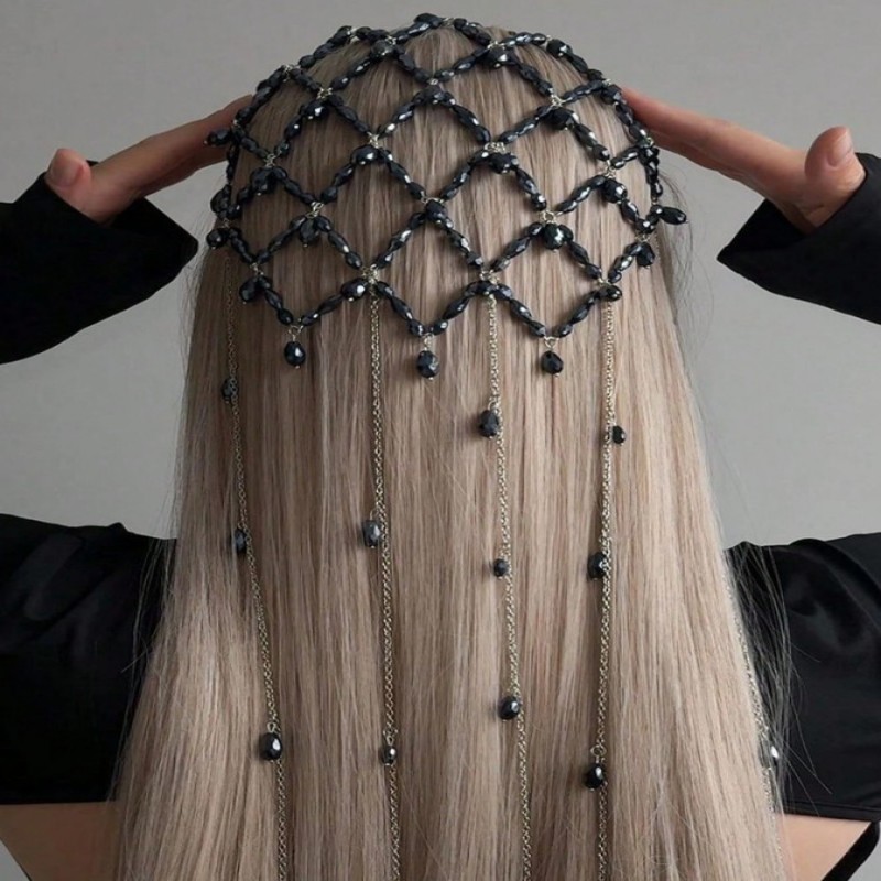 374 1 pieza Diadema de malla con perla negra estilo vintage, accesorio de pelo elegante y de moda $MXN 374 |